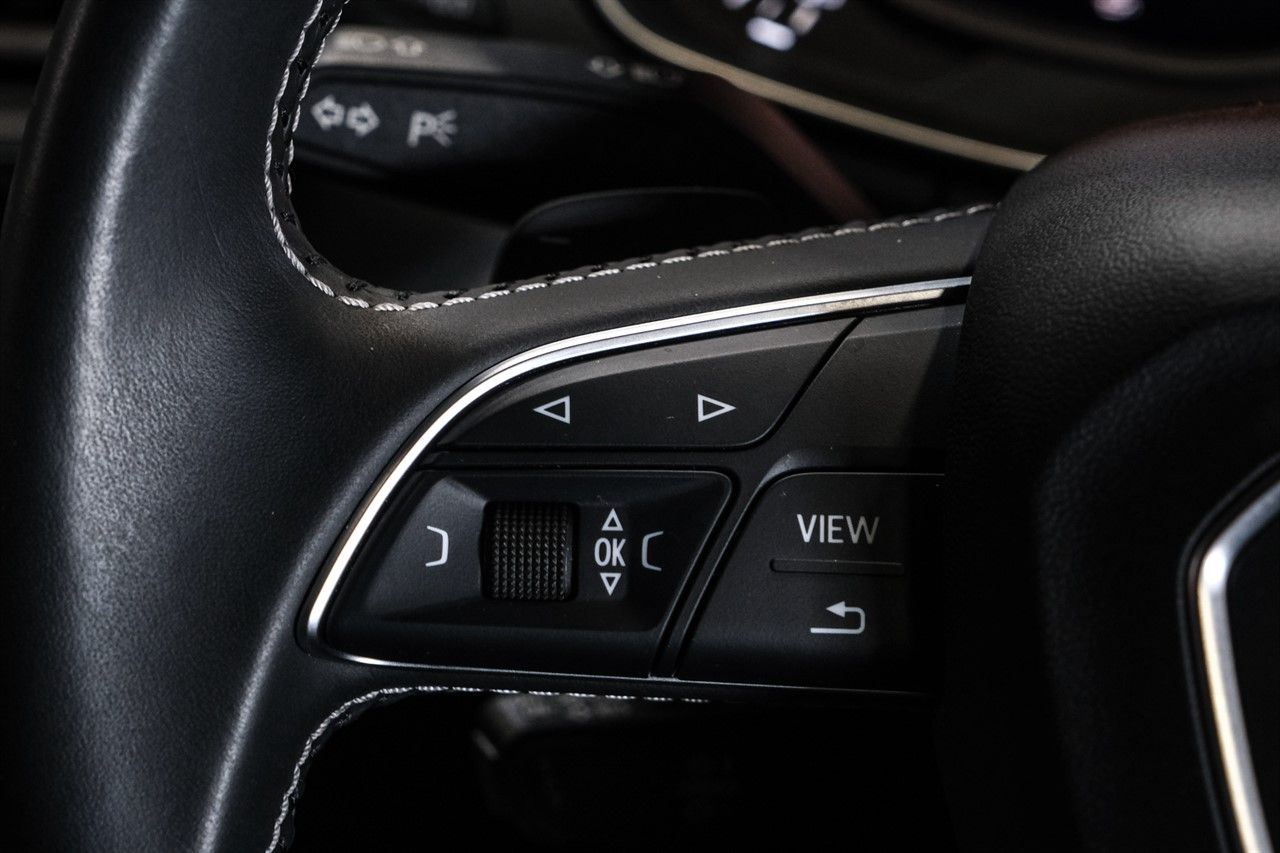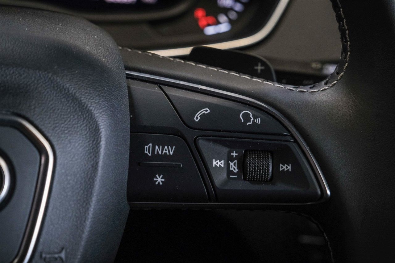 - Flat bottom multi-function steering wheel with paddle shift controls.